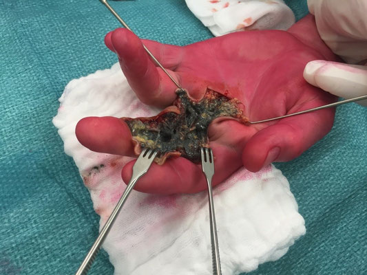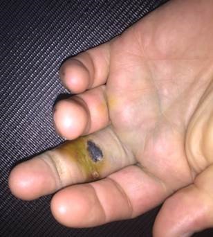 Les traumatismes par injection sous pression, initialement d’apparence bénigne, sont des lésions gravissimes et urgentes. On va assister à un spasme artériel suivi d’une ischémie par effet thermique et par irritation chimique dû à la toxicité du produit injecté, à sa vitesse de pénétration et à la pression délivrée par le pistolet. La clinique est trompeuse pendant les premières heures ; le patient se présente avec un point d’entrée punctiforme, banal, peu douloureux au niveau de la pulpe du doigt (souvent l’index). Par la suite le patient développe une rougeur et un œdème suivi d’une ischémie localisée qui va s’étendre en fonction de la quantité et de la toxicité du produit. Surtout ne pas laisser le patient retourner chez lui car il s’agit d’une urgence chirurgicale. Des prélèvements bactériologiques seront réalisés suivi d’un débridement-lavage des gaines des fléchisseurs. Parfois cela nécessite une fasciotomie et des lavages itératifs. Le patient reste hospitalisé pour contrôler le pansement et pour une antibiothérapie intraveineuse.